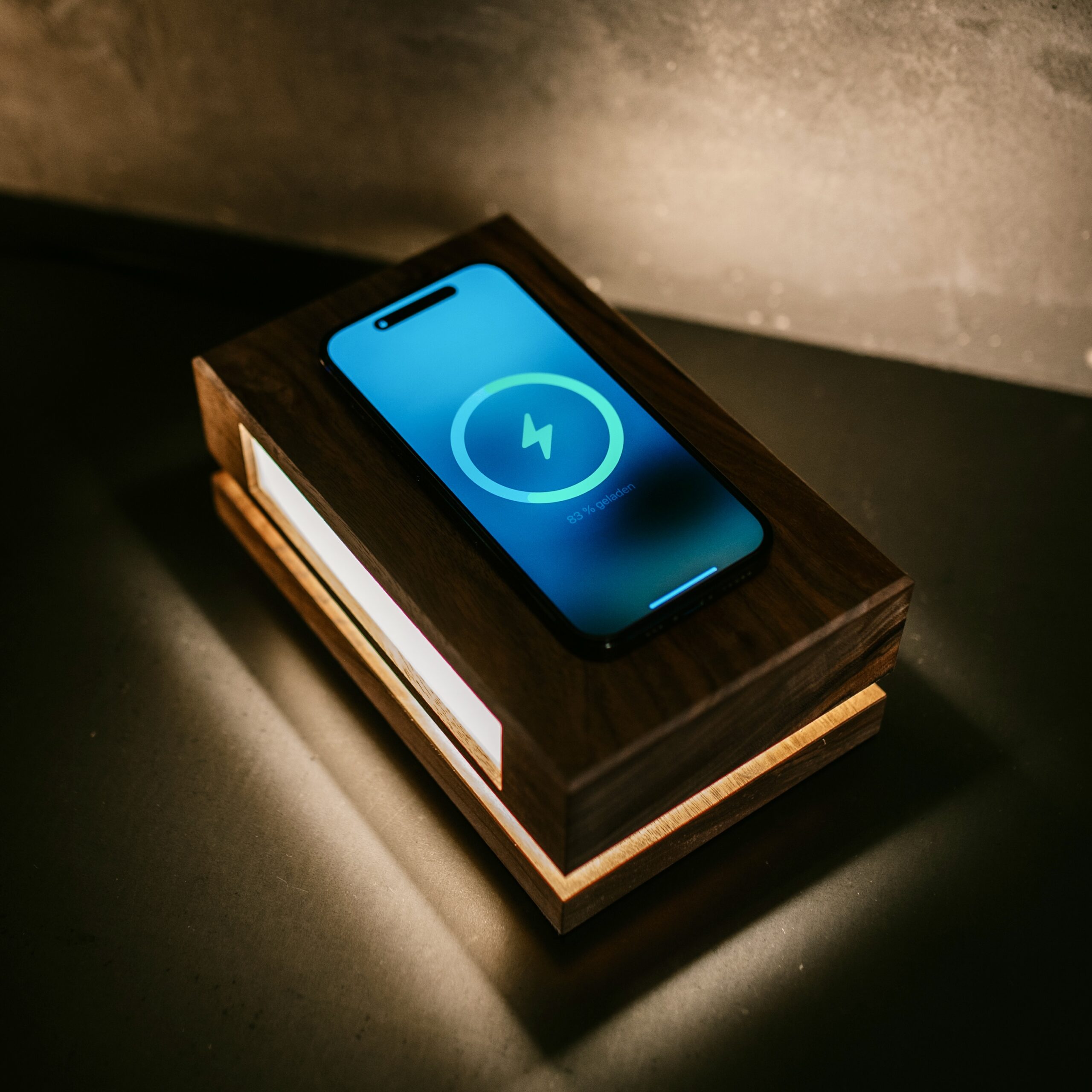 Euer Handy könnt ihr mit dem 10W Lademodul induktiv laden, auch wenn die Leuchte ausgeschaltet ist.